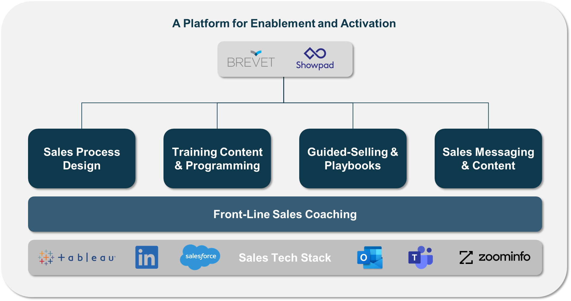 Supporting sales enablement teams with sales incentive plan design, Showpad Optimization, sales onboarding programs, and overall enablement-as-a-service offerings.Â