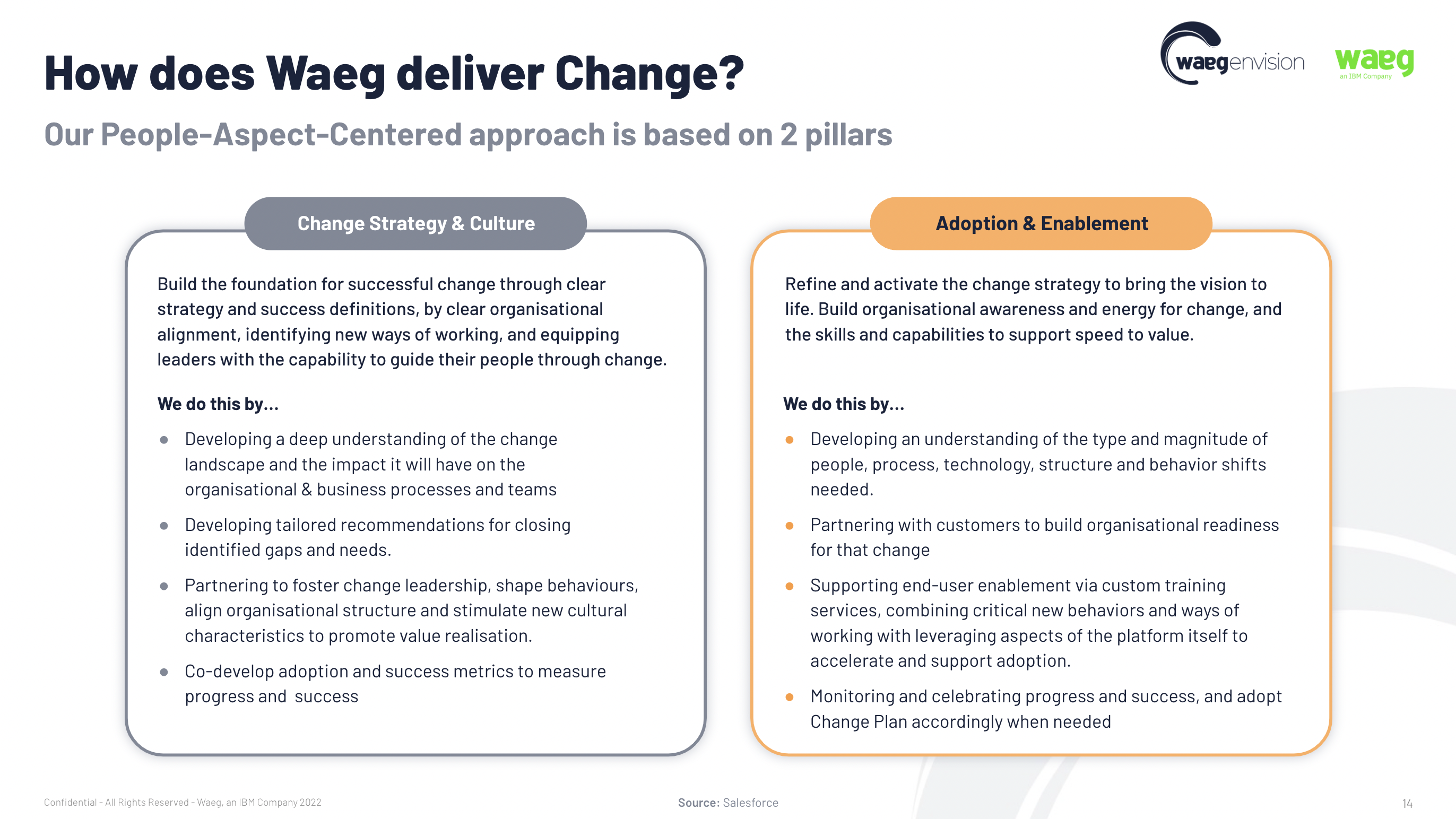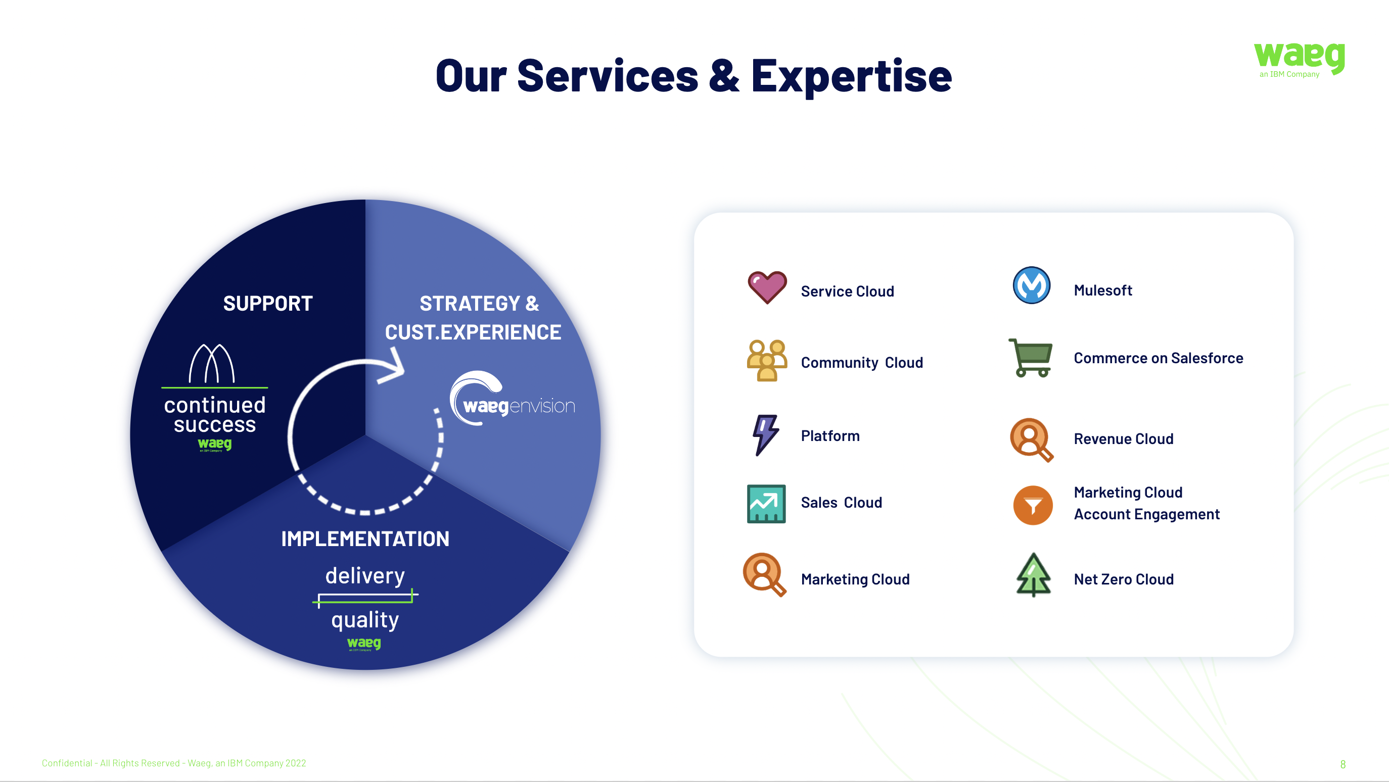 At Waeg, an IBM Company, we take great pride in delivering rapid and measurable business results, turning ideas into enterprise-strength solutions on the world’s leading SaaS platform. With our team of experienced Waegers, we deliver first time right.